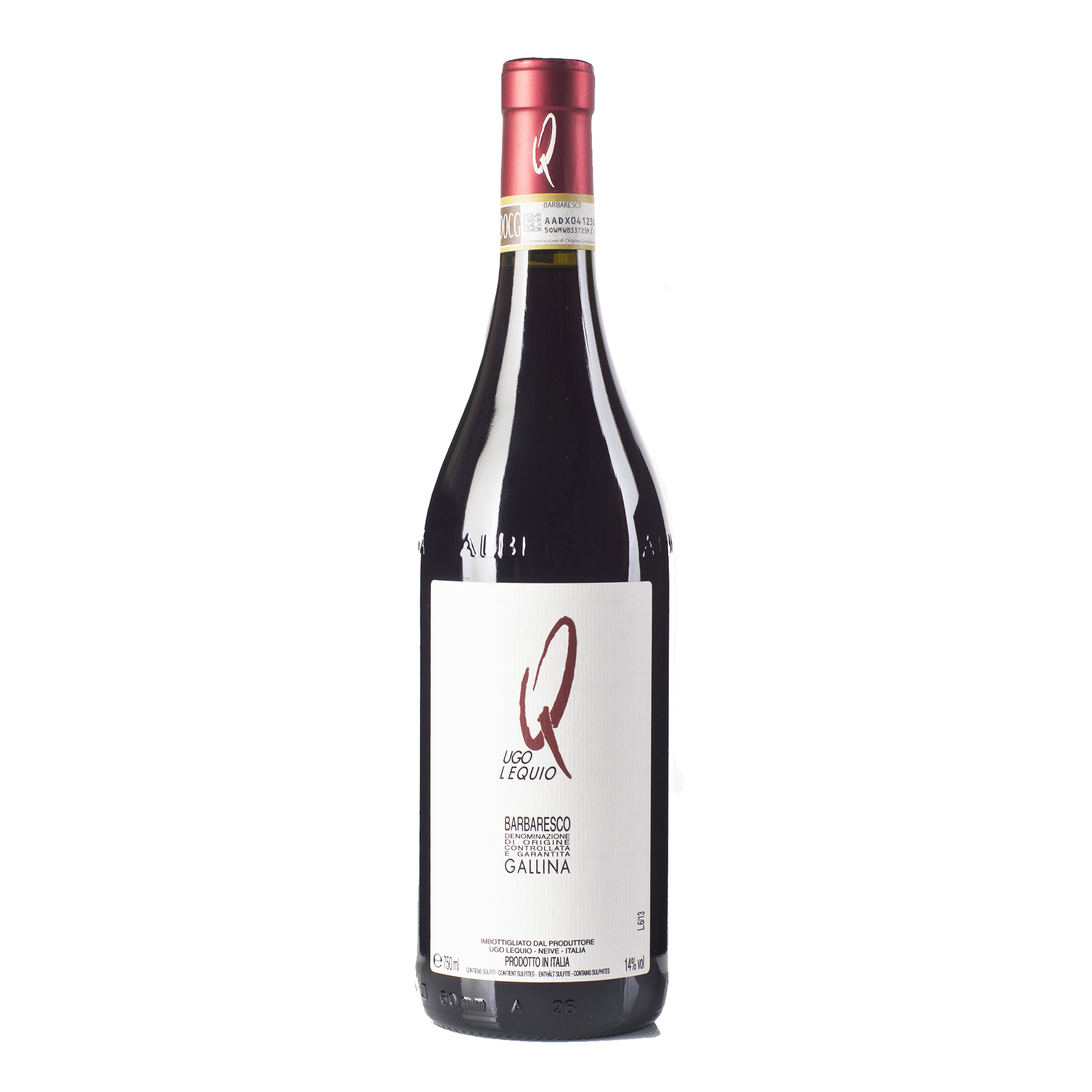 Il Barbaresco di Ugo Lequio è prodotto con uve Nebbiolo provenienti dal “cru” storico Gallina situato nel comune di Neive; vigneti il cui anno d’impianto risale rispettivamente al 1953, 1963, 1971 esposti a sud, zona particolarmente vocata a dare vini di buona struttura, persistenti e longevi nel tempo, famosi per la loro eleganza. Resa: 40 – 45 hl/ettaro.