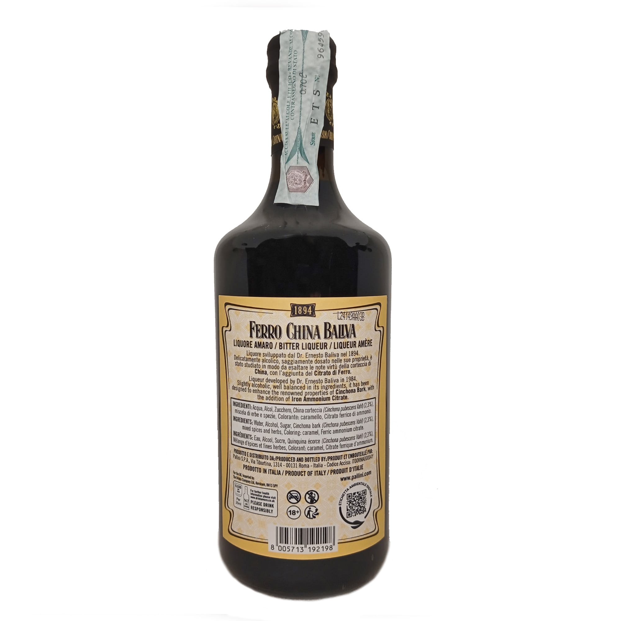 Amaro Ferro China Baliva nasce da una storica ricetta che prevede linfusione di corteccia di china rossa, genziana, cannella e arancio amaro. Il tutto arricchito dalle proprietà del ferro ammonio citrato, che favorisce l’assorbimento del ferro da parte dell’organismo umano. Grazie alla sua composizione, era considerata una bevanda dalle virtù toniche e corroboranti.