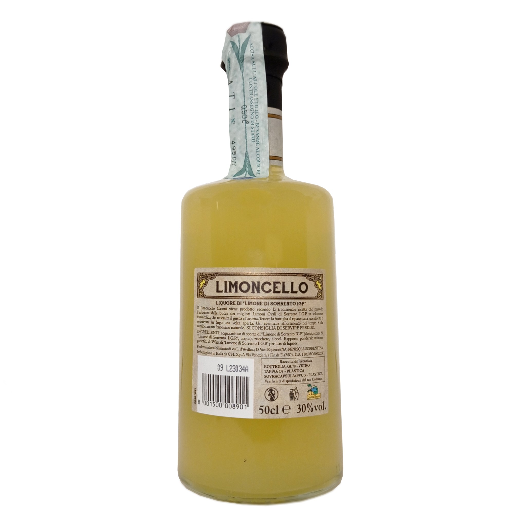 Limoncello di Sorrento IGP: il sapore naturale di Sorrento è tutto da gustare La tradizione italiana di Limoncello è rappresentata dal Limoncello Casoni: liquore di limone di Sorrento IGP Casoni.I limoni IGP vengono raccolti a Sorrento e le loro scorze vengono infuse in alcool. La nostra ricetta richiede almeno 350 gr di limoni per litro di prodotto.