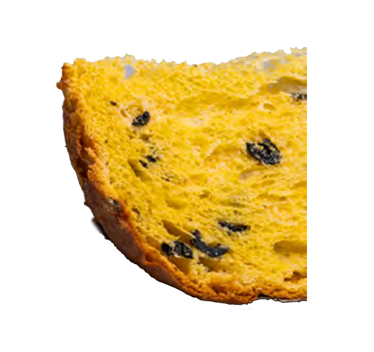 Il nostro Panettone ha una doppia lievitazione di più di 48 ore, è fatto solo con lievito madre vivo ed è farcito con Olive candite, Cioccolato Bianco e Rosmarino.