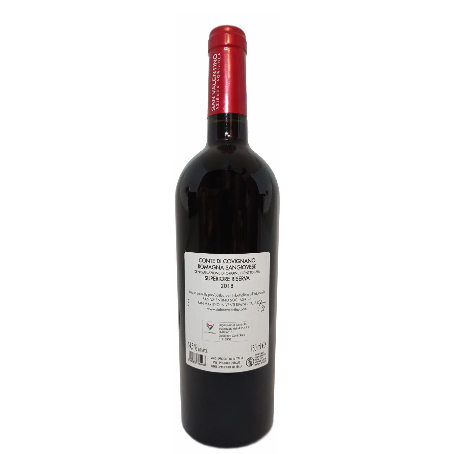 Il motto della Cantina San Valentino riporta: “il vino buono nasce nel vigneto e si completa in cantina”, ed è proprio sulla base di ciò, che tutti gli interventi sulle piante vengono fatti ad un unico scopo: creare condizioni ottimali per uve sane e di eccellente qualità. Sangiovese Superiore Riserva “Il Conte di Covignano”, è un vino le cui uve derivano da agricoltura biologica.