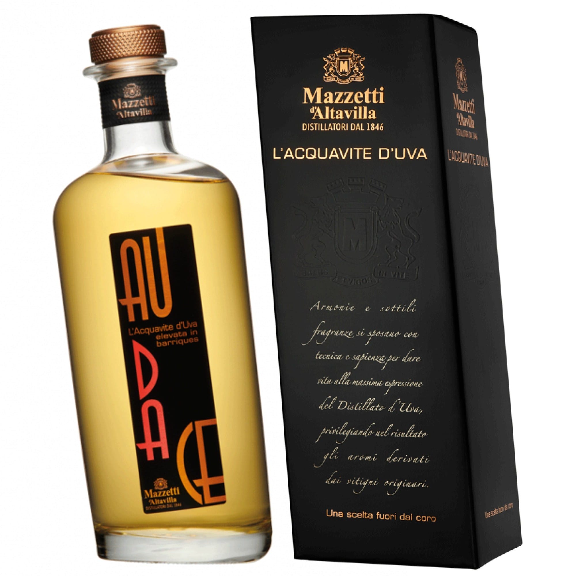 E’ inaspettato il profilo sensoriale di quest’Acquavite d’Uva, proveniente da selezionati mosti d’uve piemontesi e distillata a bagnomaria prima di essere invecchiata in botti di Rovere